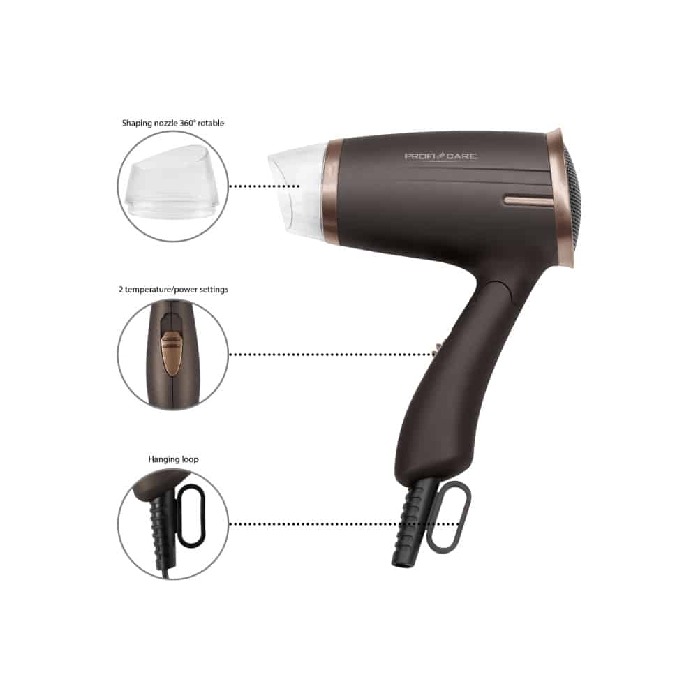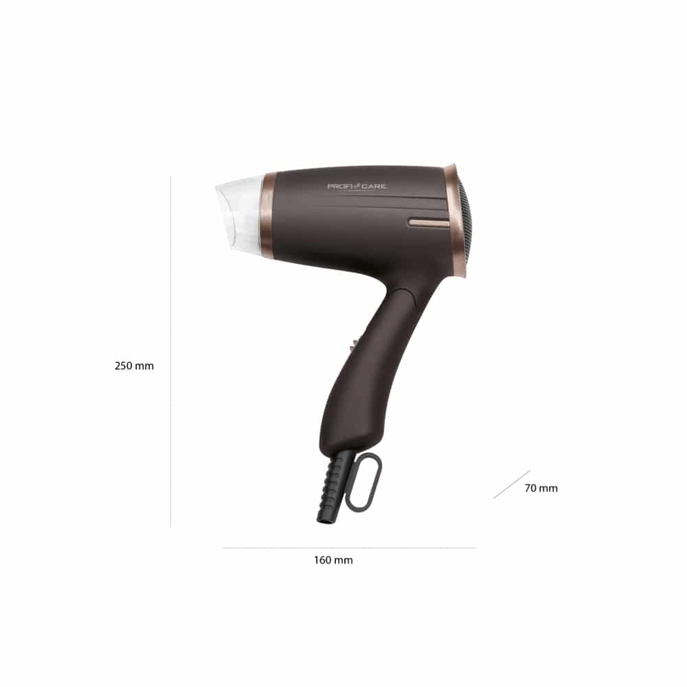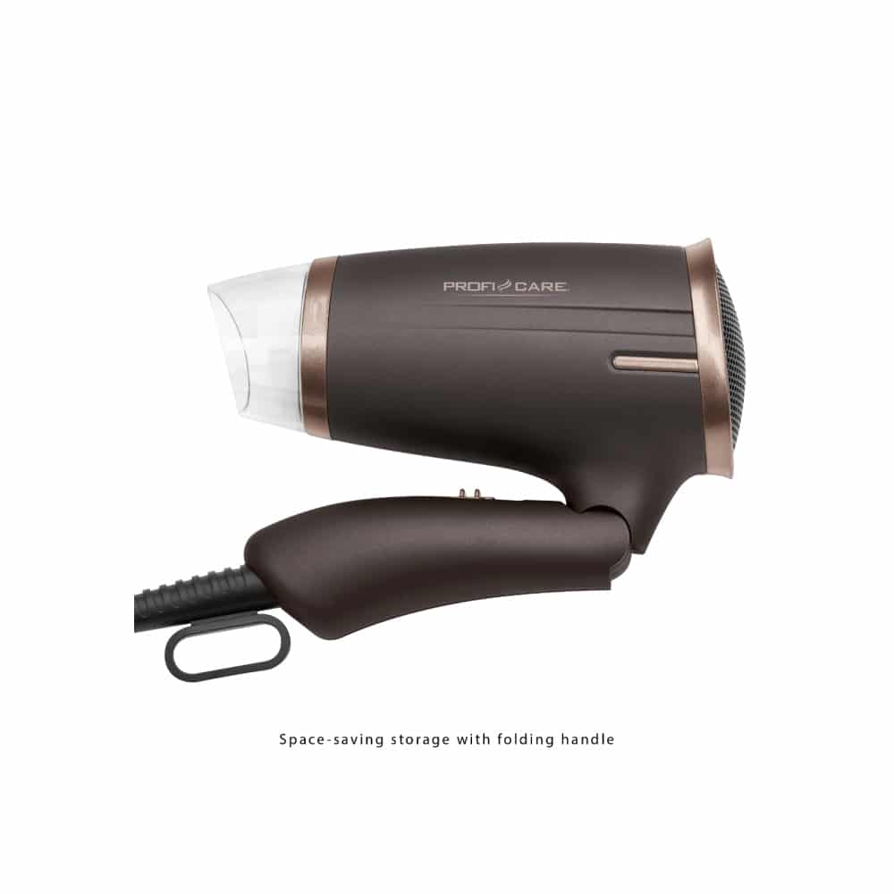 Multumita manerului pliabil, uscatorul de par de la ProfiCare este foarte comod pentru vacante. Acesta poate fi depozitat cu usurinta in orice valiza, fiind mic si compact.