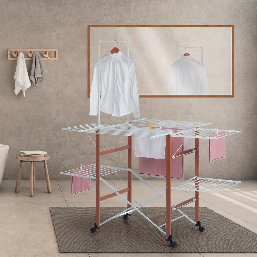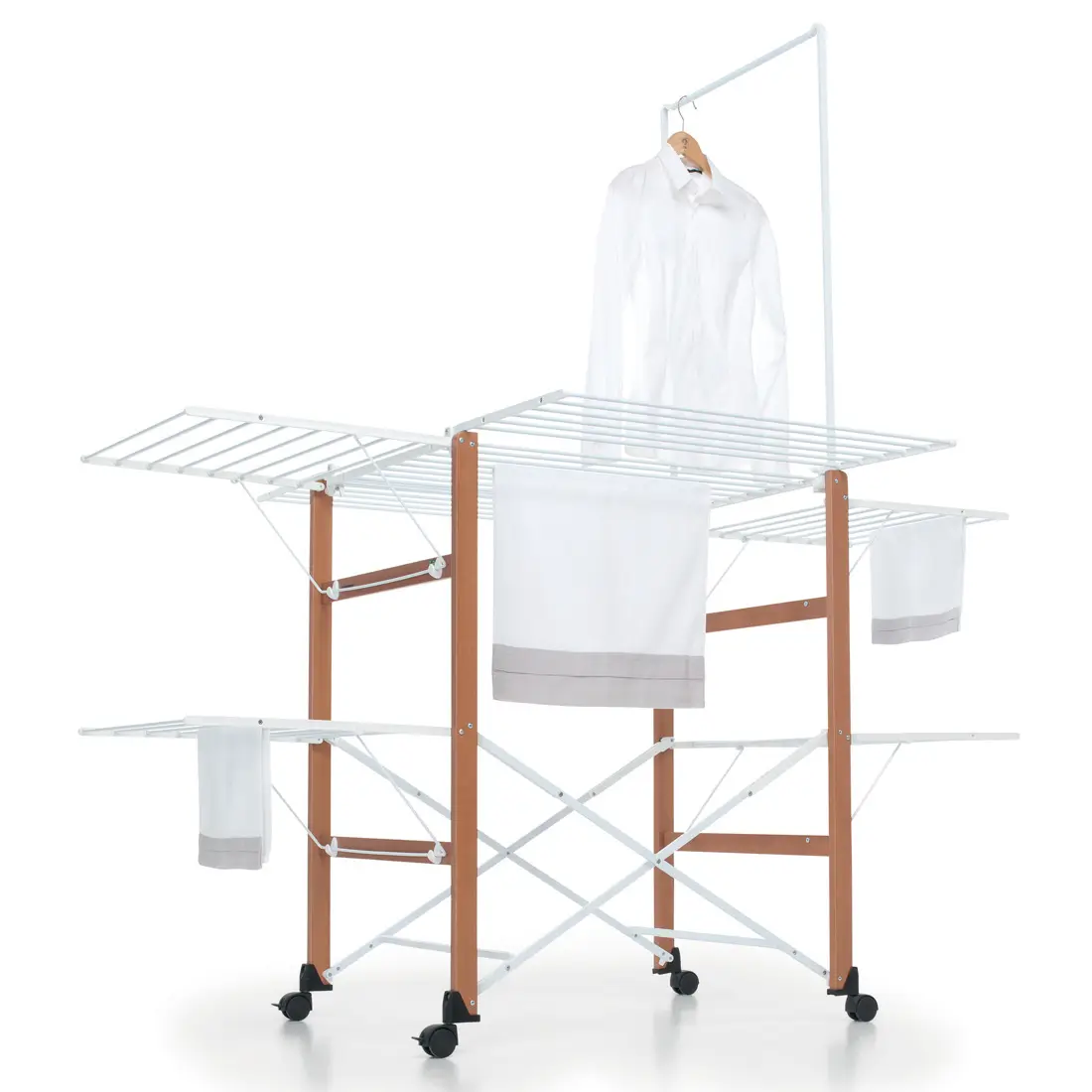 Uscatorul se poate plia complet, pentru a optimiza spatiul de depozitare, iar structura din lemn masiv de fag asigura longevitate, astfel ca te poti bucura de confort si functionalitate pentru mult timp.
