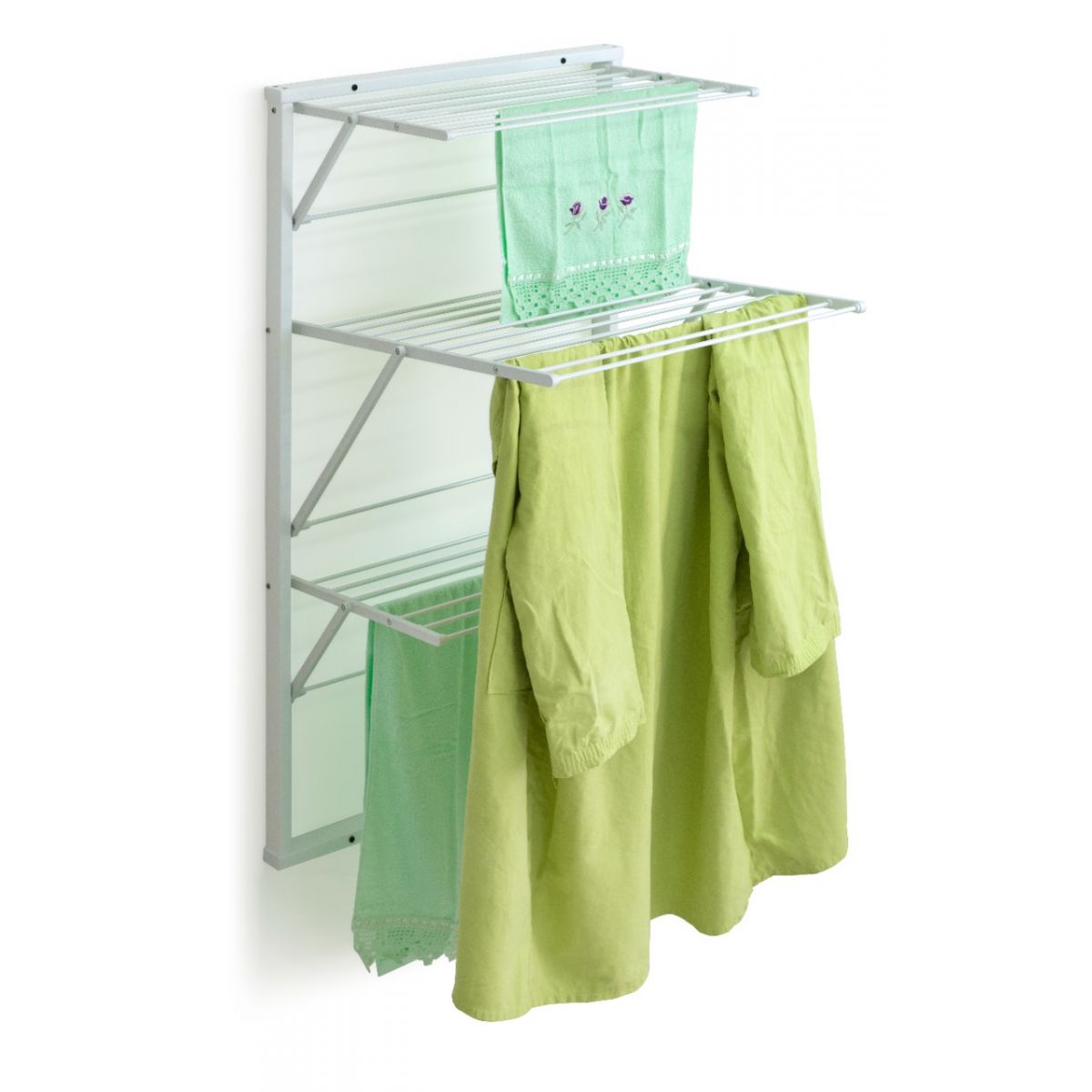 Cu un design practic si ideal pentru depozitare eficienta, uscatorul de rufe pliabil cu prindere pe perete este ideal pentru oricine!