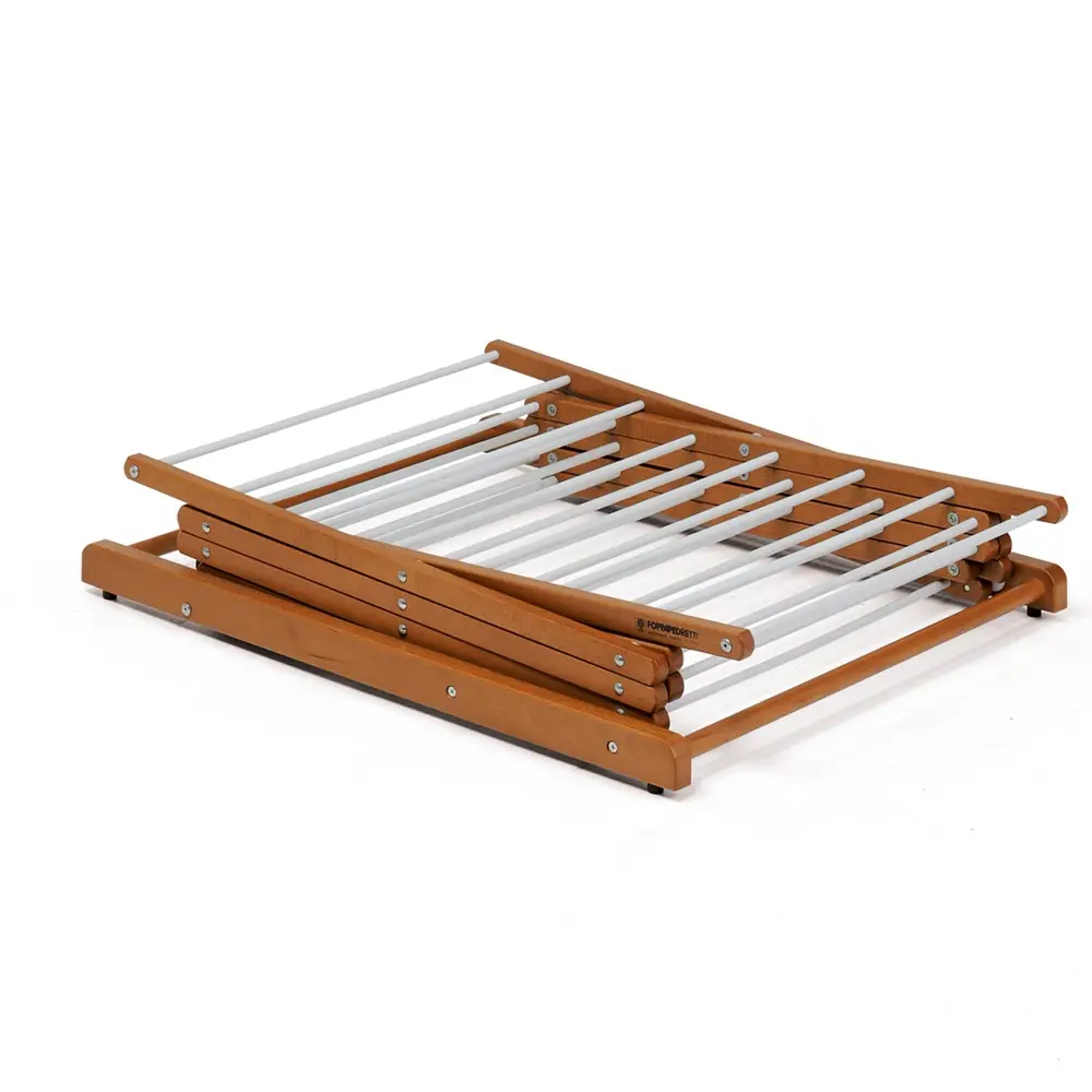 Uscatorul se poate plia complet, pentru a optimiza spatiul de depozitare, iar structura din lemn masiv de fag asigura longevitate, astfel ca te poti bucura de confort si functionalitate pentru mult timp.
