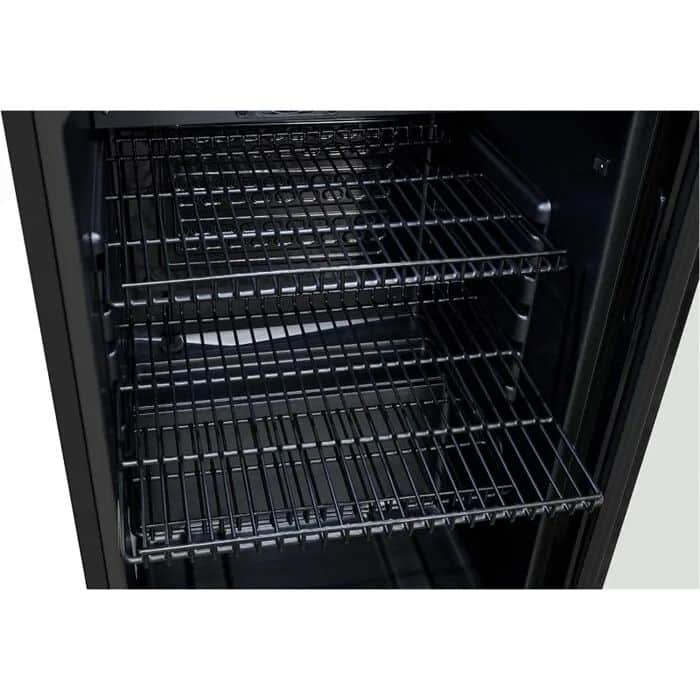 Cele 3 rafturi din otel iti permite sa depozitezi alimentele dupa bunul plac, fiecare raft fiind interschimbabil. Recircularea aerului din interior te va scuti de griji, iar usa reversibila iti permite sa o adaptezi in functie de spatiu.